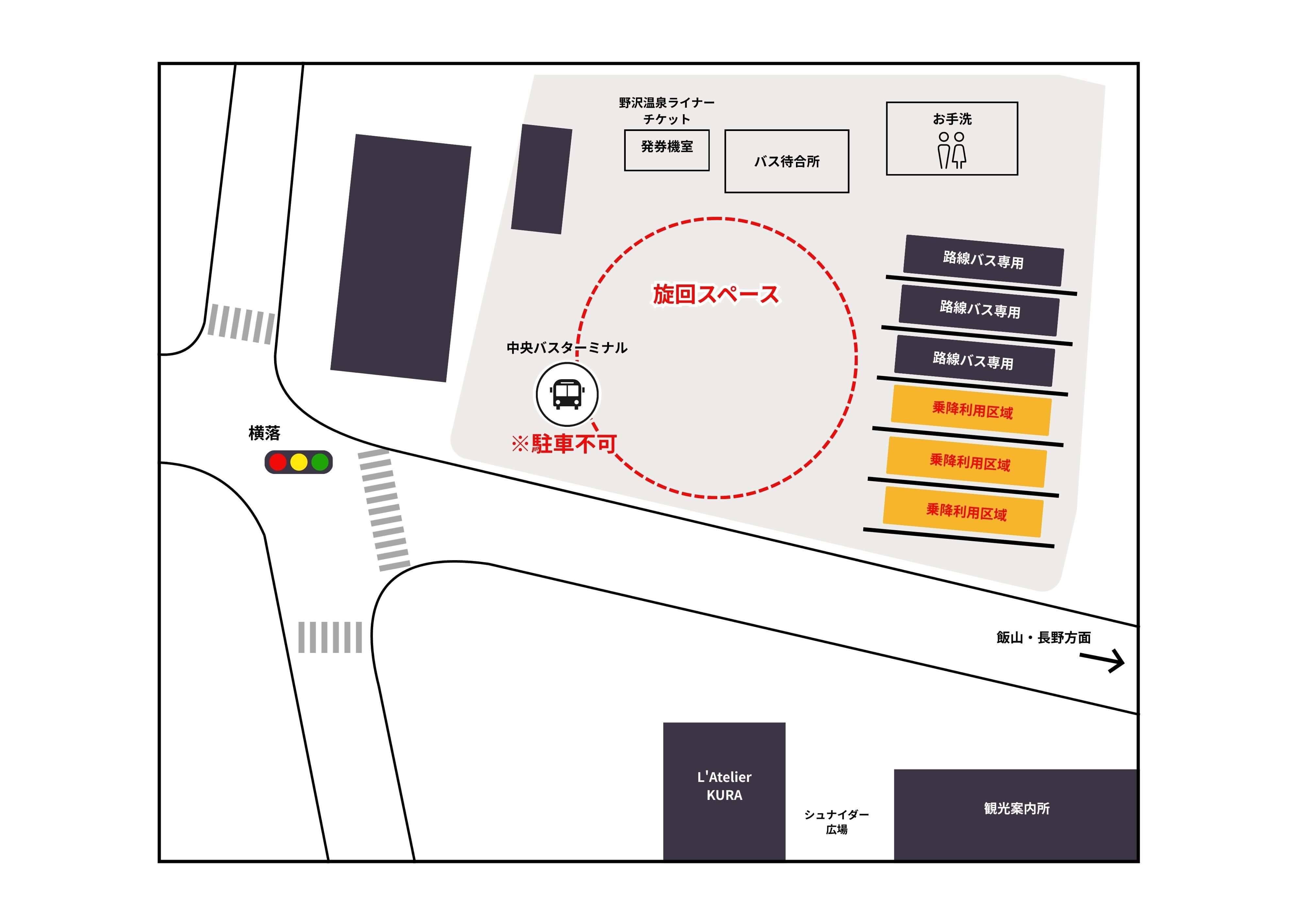 - 大型・中型バス等の乗降にのみご利用いただけます。